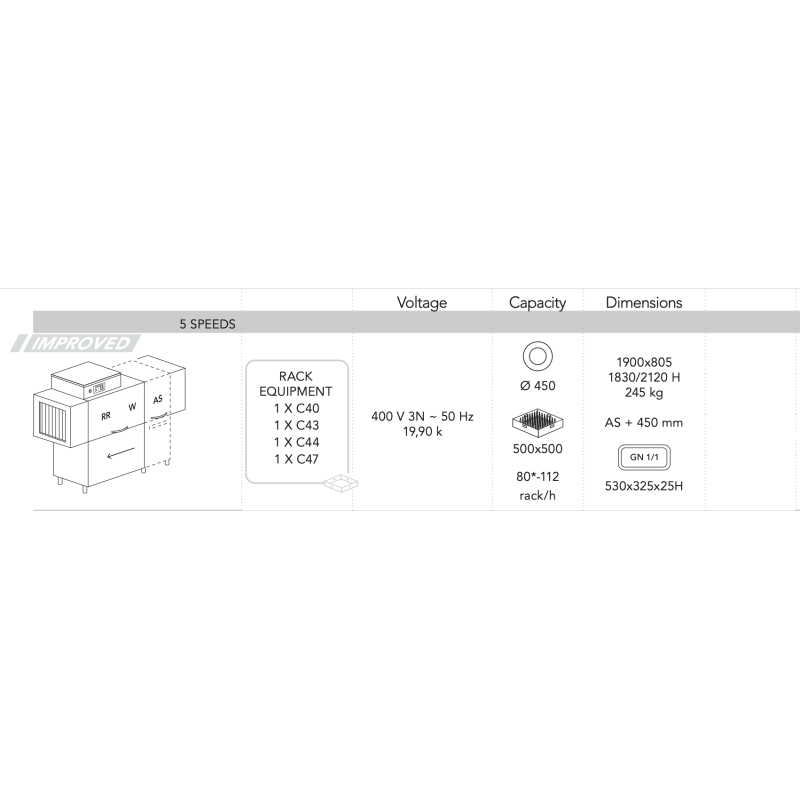 Lave-Vaisselle à Avancement Automatique avec simple rinçage Modèle 208 RX E