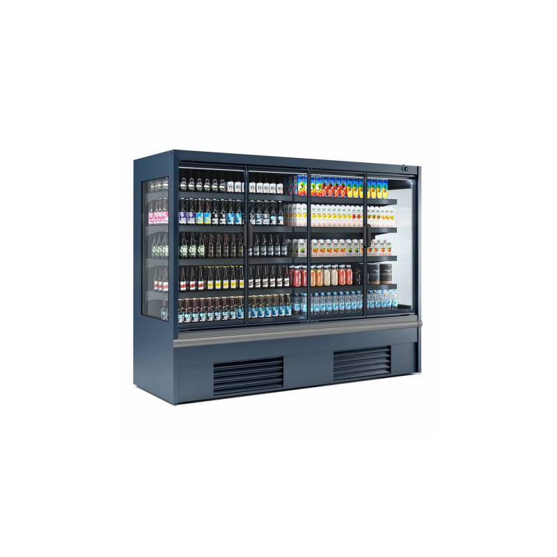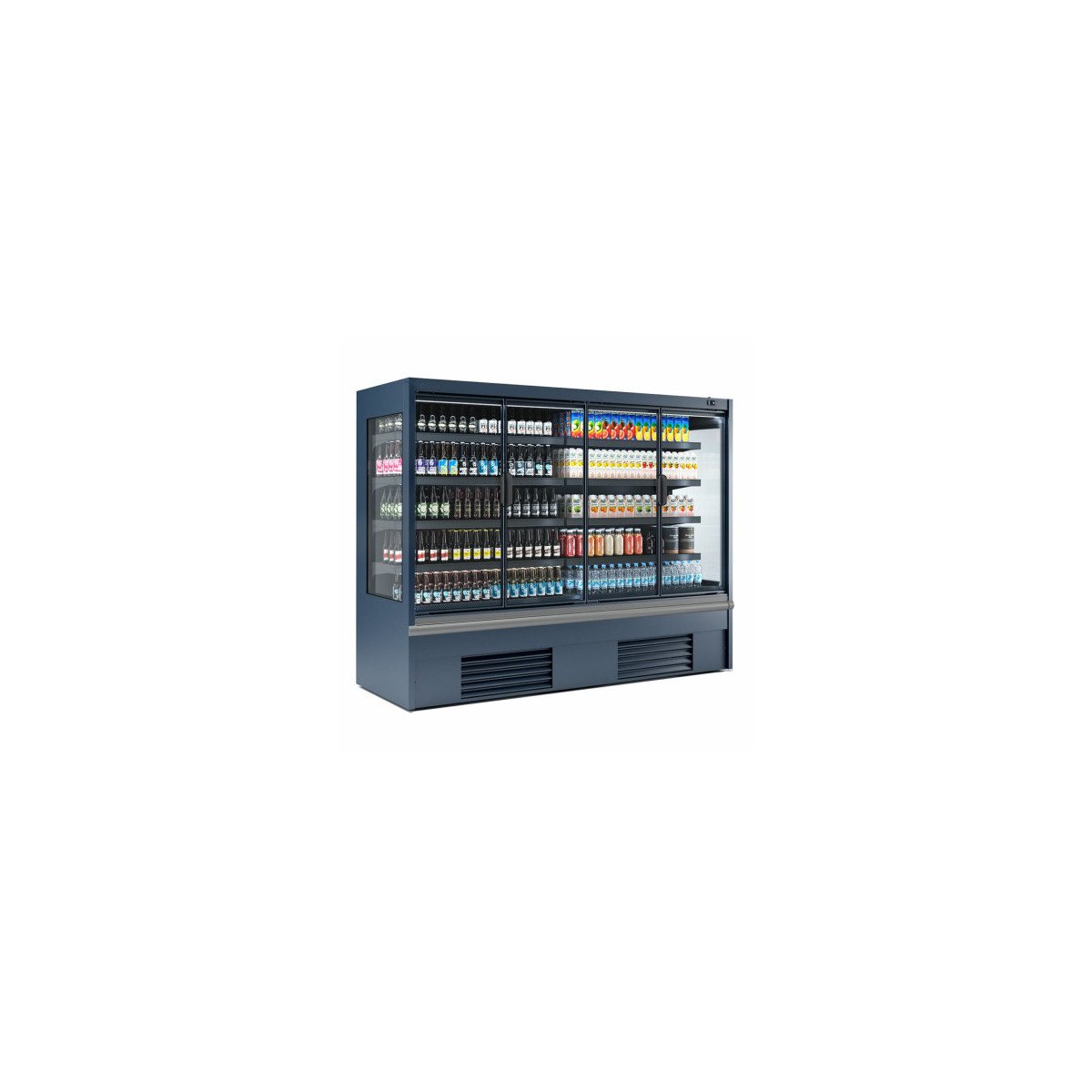 Vitrine murale réfrigérée avec visibilité maximale des produits, doté de portes battantes en verre double sans sérigraphie et groupe froid incorporé.